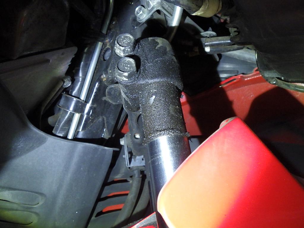 | внешняя часть вилки | rust paint, вздутие <средне>, потек масла <много> |