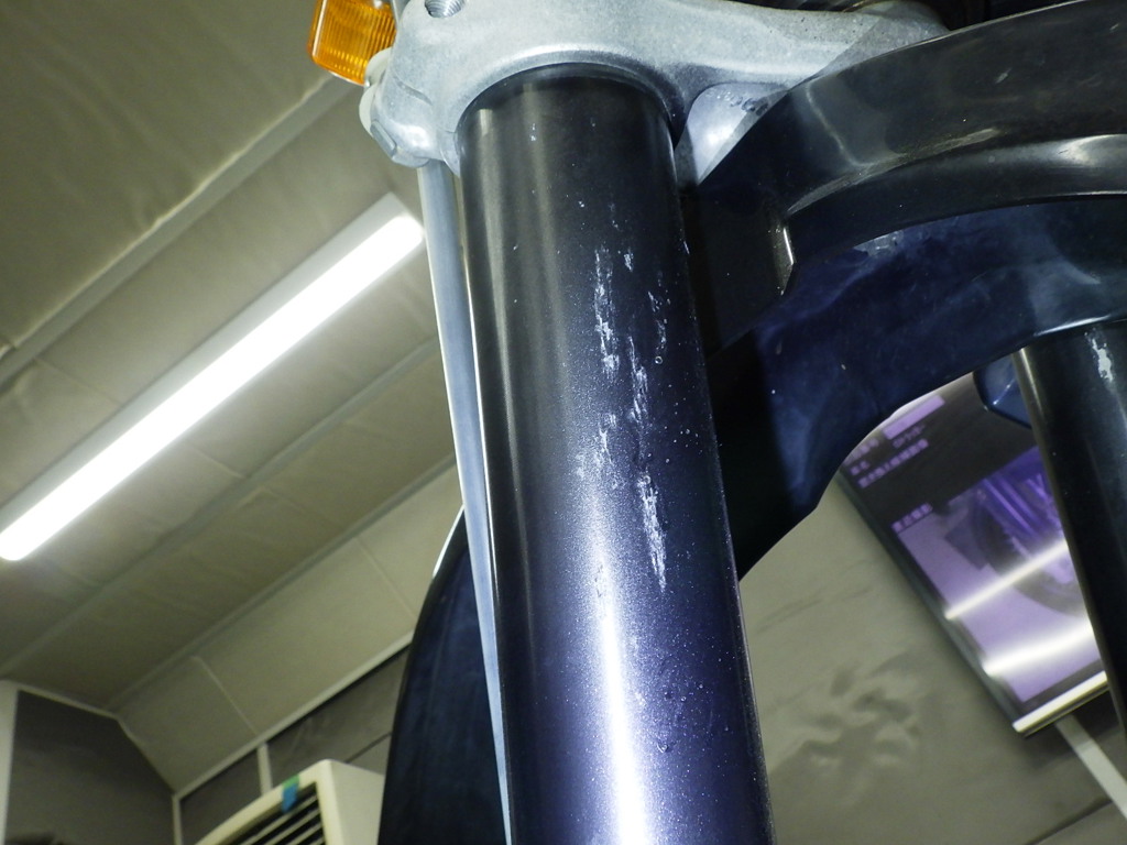 | внешняя часть вилки | царапины, следы коррозии <много>, частичная подкраска, неисправность, потек масла <немного>, трещины <много> |