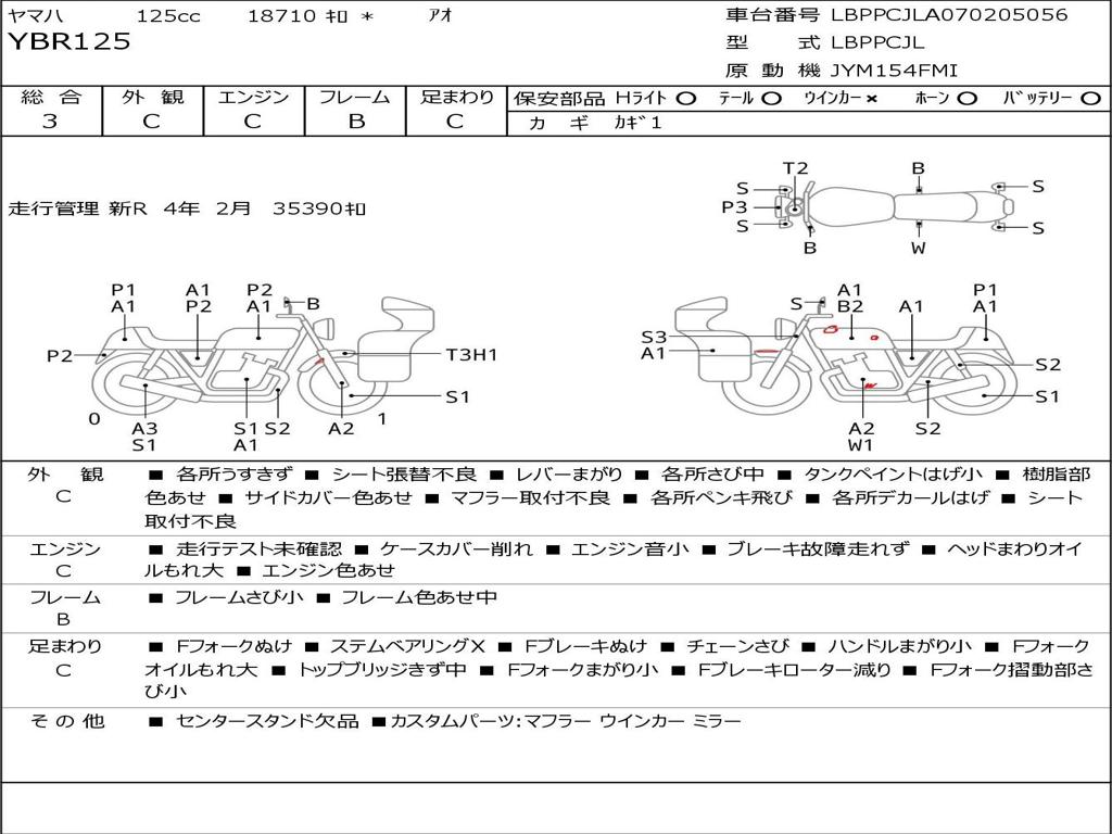 | Номер рамы / VIN | LBPPCJLA070205056 |