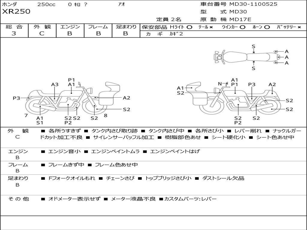 | Номер рамы / VIN | MD30-1100525 |