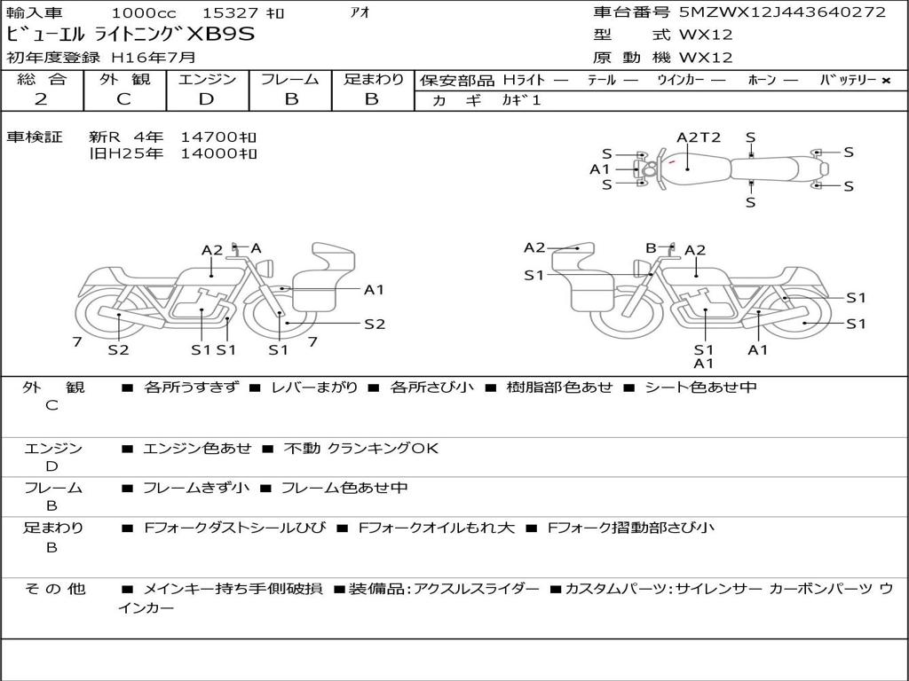 | Номер рамы / VIN | 5MZWX12J443640272 |