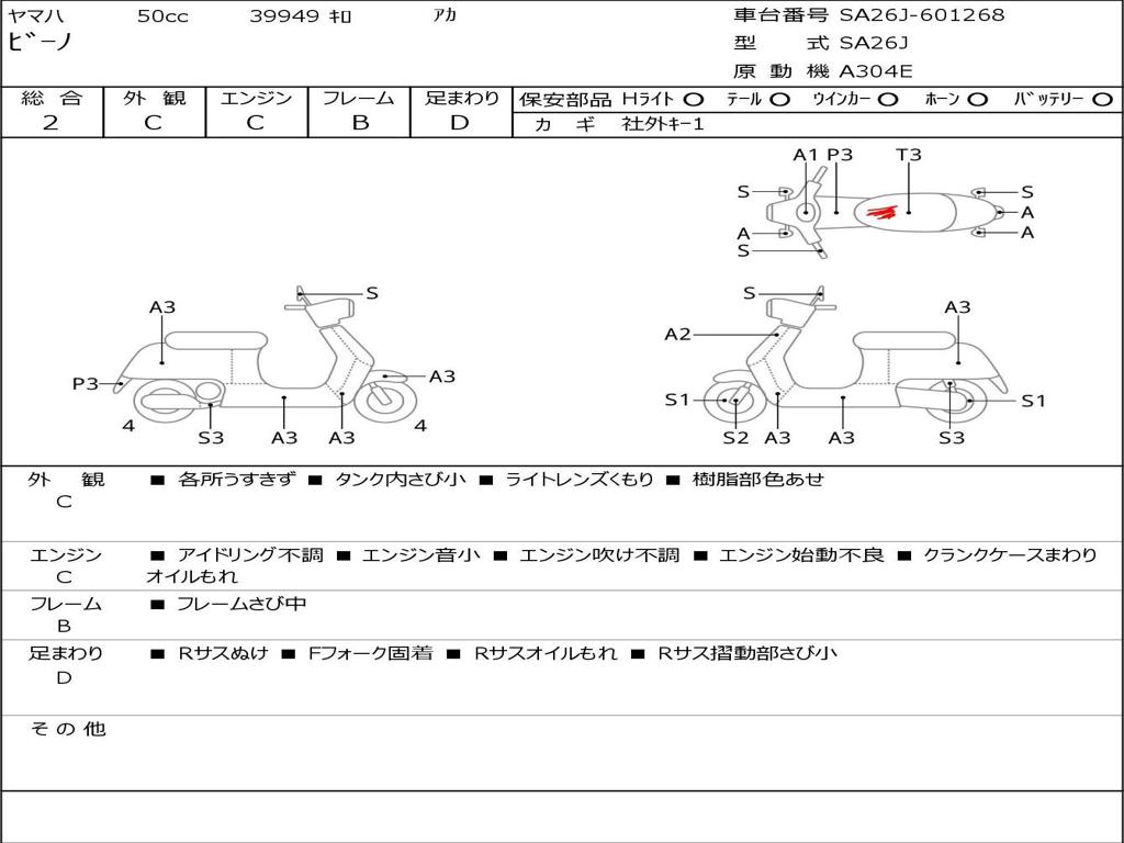 | Номер рамы / VIN | SA26J-601268 |