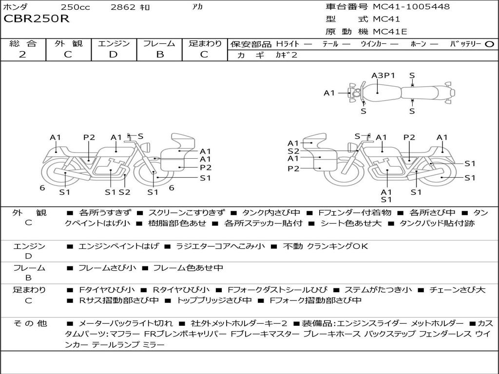 | Номер рамы / VIN | MC41-1005448 |