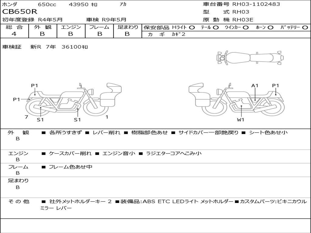 | Номер рамы / VIN | RH03-1102483 |