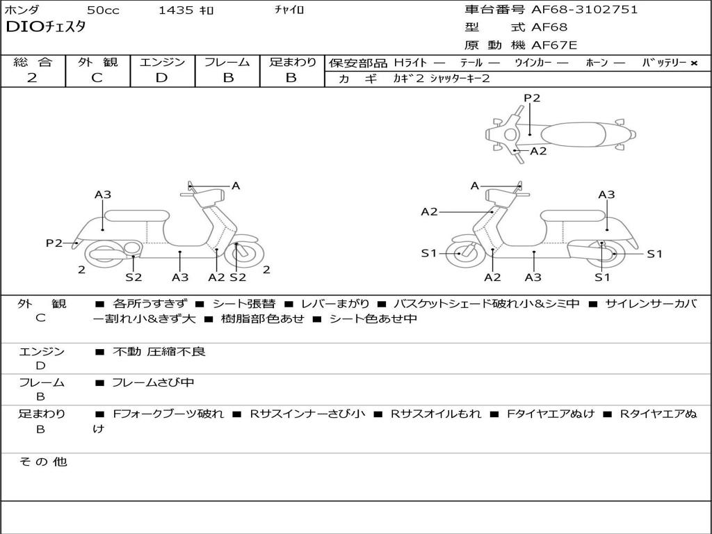 | Номер рамы / VIN | AF68-3102751 |
