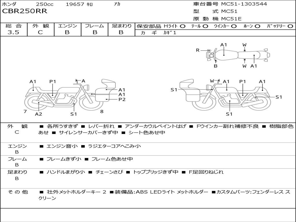 | Номер рамы / VIN | MC51-1303544 |