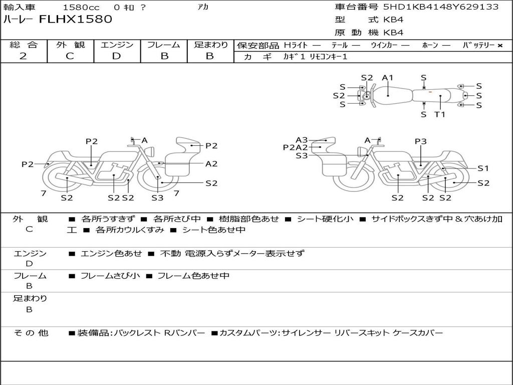 | Номер рамы / VIN | 5HD1KB4148Y629133 |