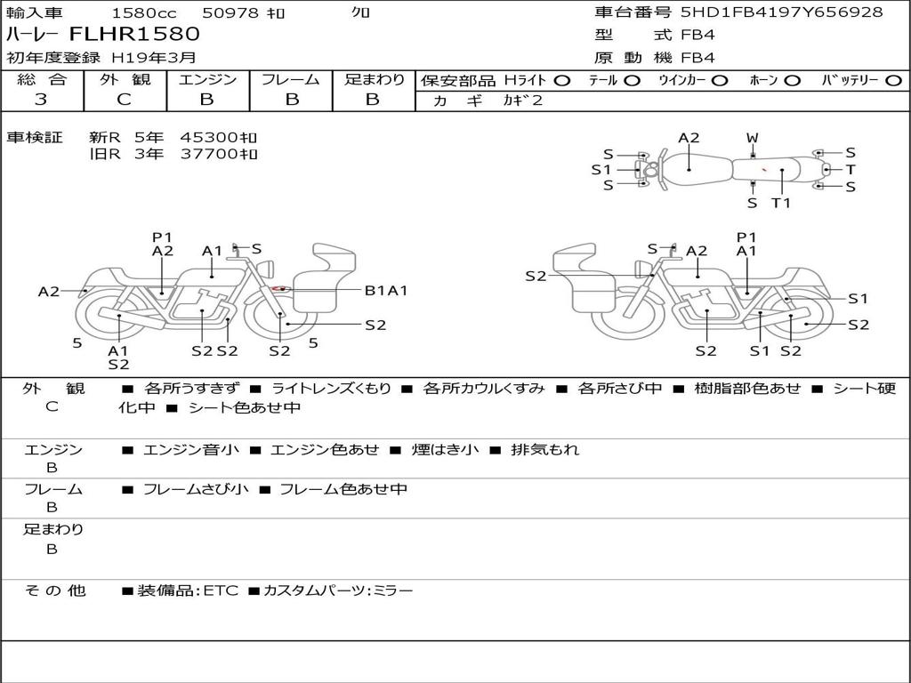 | Номер рамы / VIN | 5HD1FB4197Y656928 |