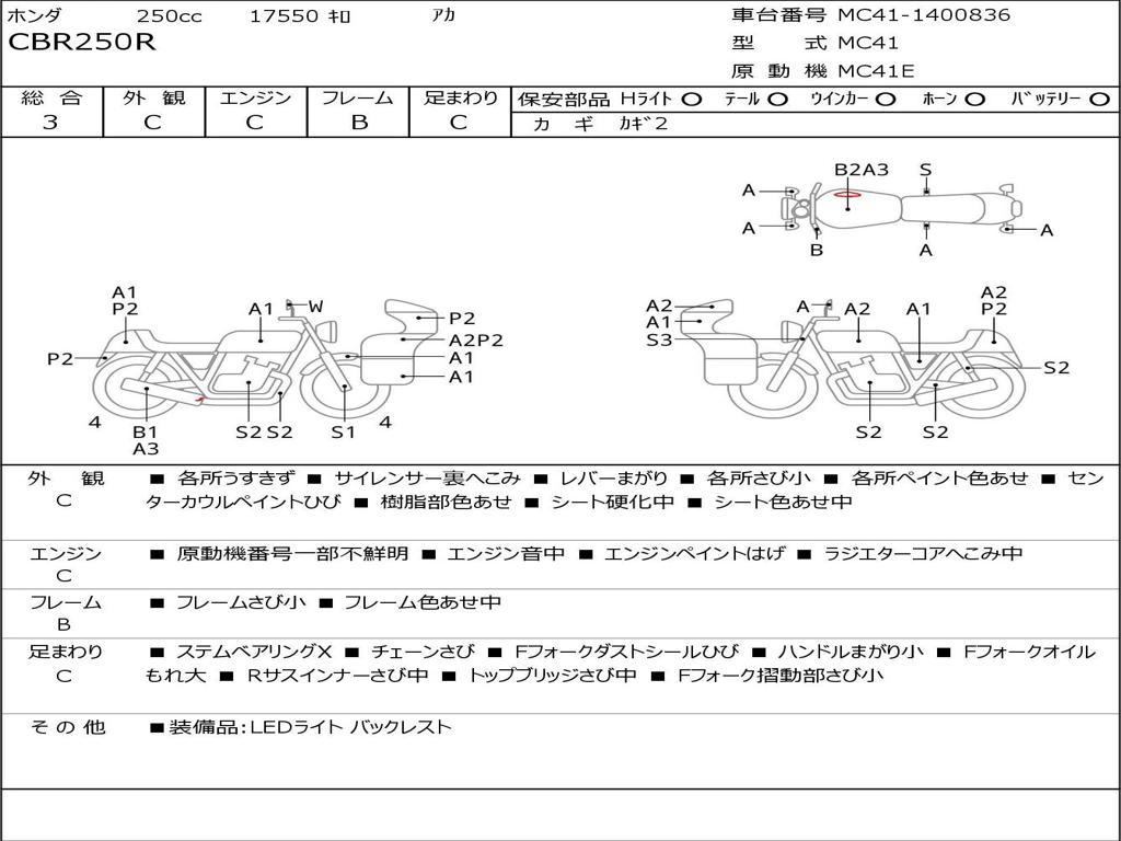 | Номер рамы / VIN | MC41-1400836 |