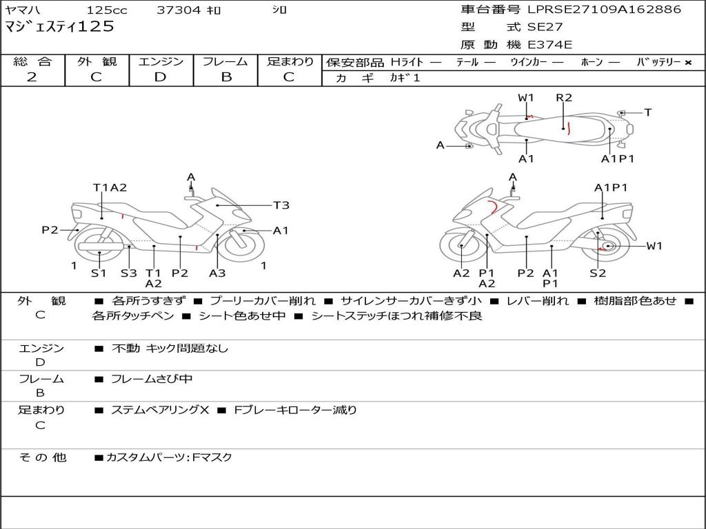 | Номер рамы / VIN | LPRSE27109A162886 |