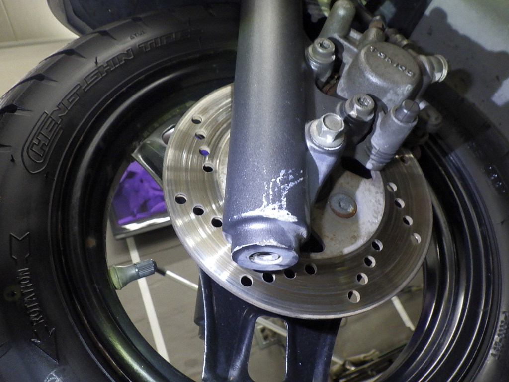 | внешняя часть вилки | царапины <много>, неисправен сальник |