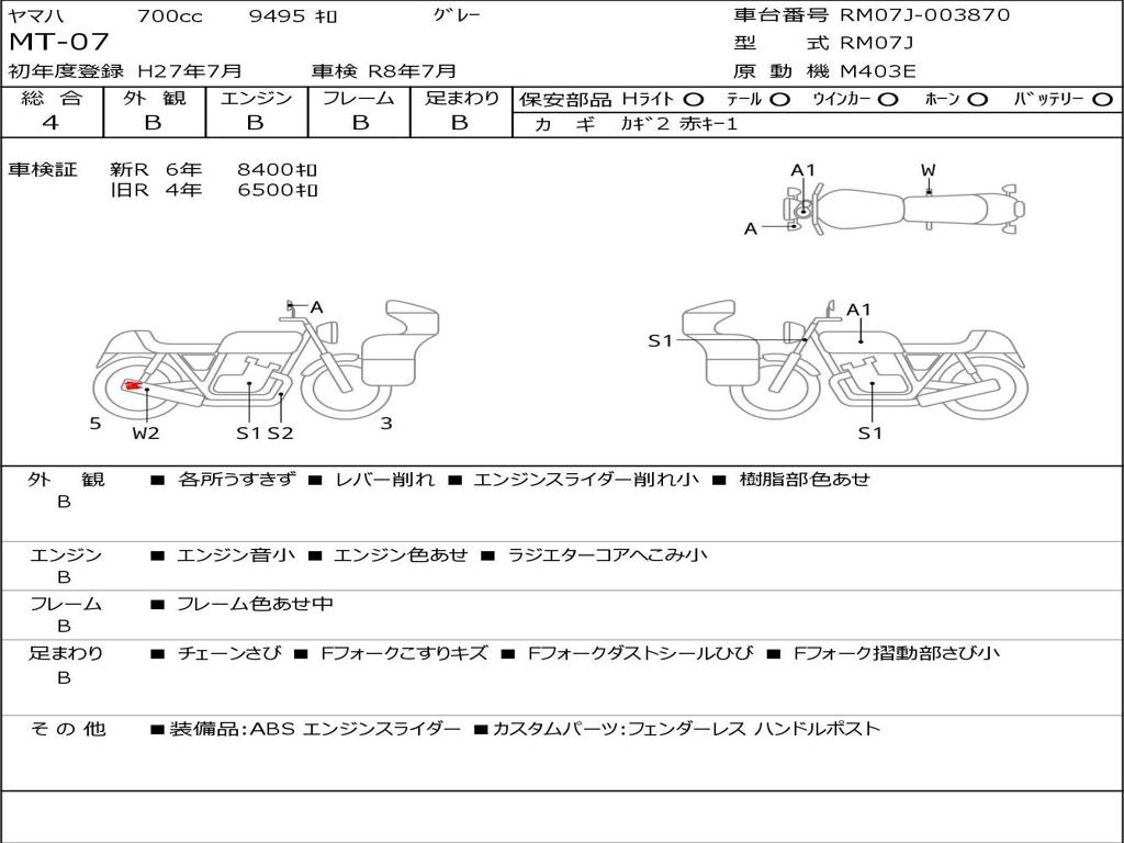 | Номер рамы / VIN | RM07J-003870 |