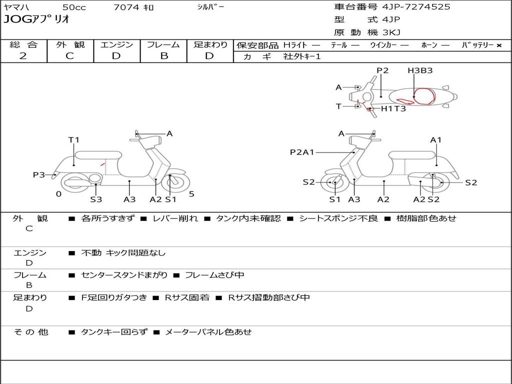 | Номер рамы / VIN | 4JP-7274525 |