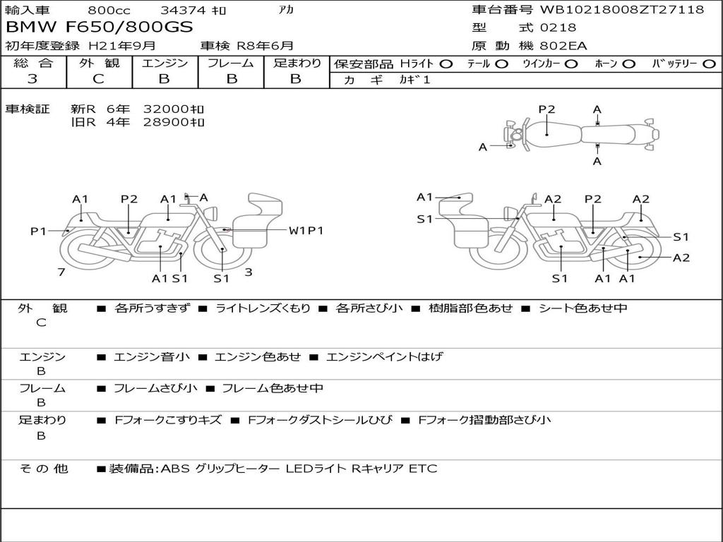 | Номер рамы / VIN | WB10218008ZT27118 |