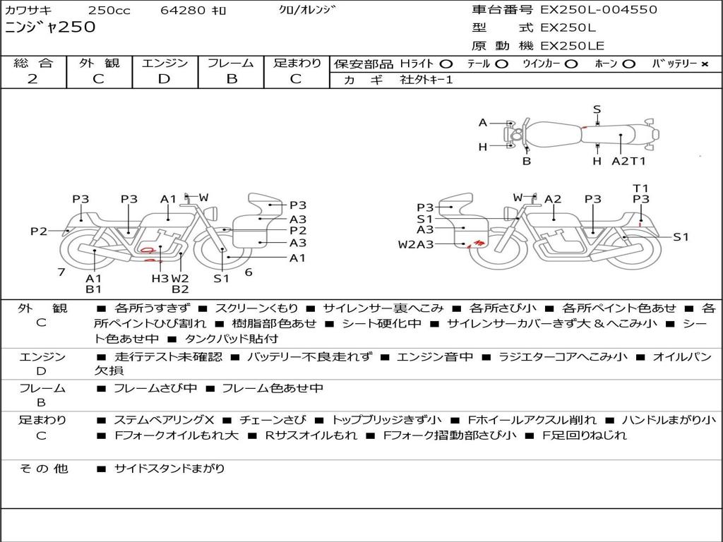 | Номер рамы / VIN | EX250L-004550 |