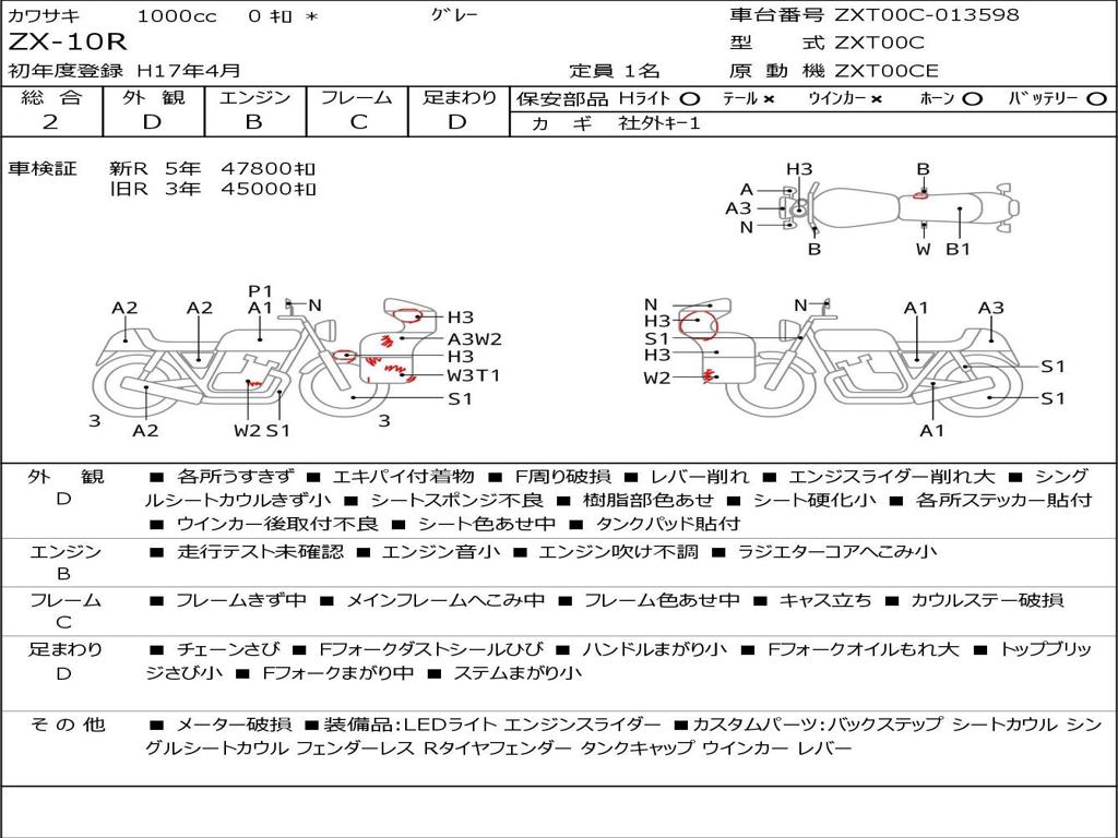 | Номер рамы / VIN | ZXT00C-013598 |