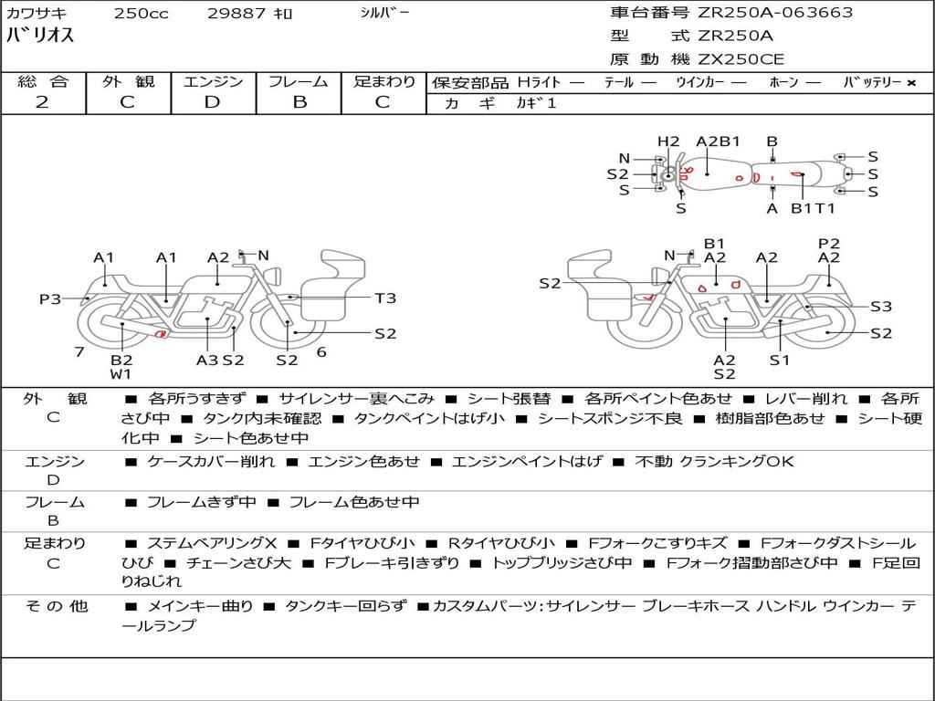 | Номер рамы / VIN | ZR250A-063663 |