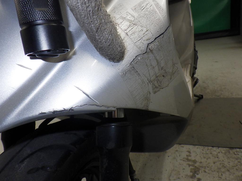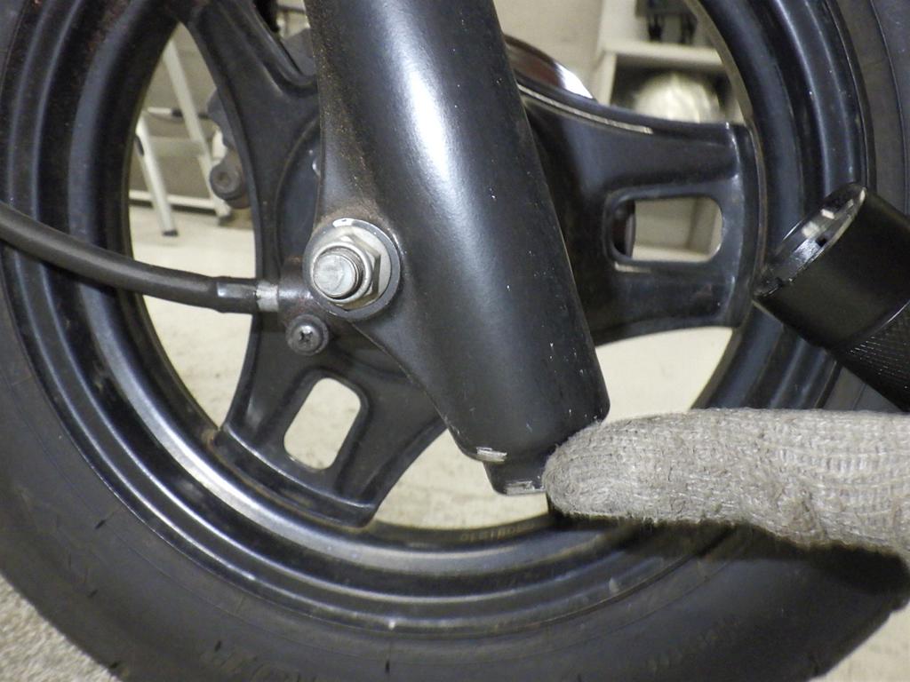 | внешняя часть вилки | потертость, потек масла <немного> |