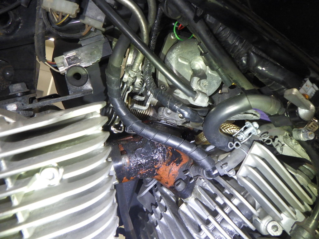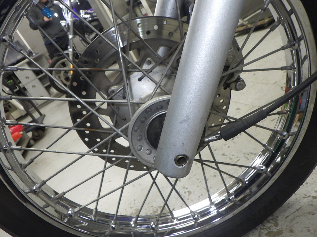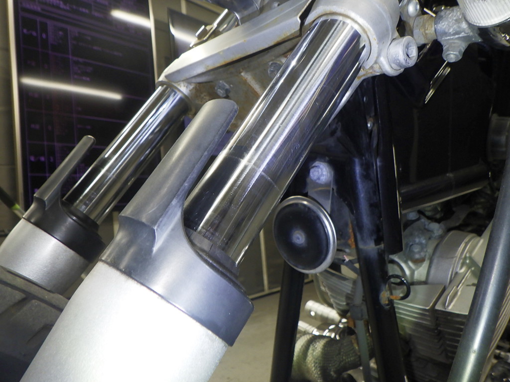 | внешняя часть вилки | царапины <много>, следы коррозии, потек масла |
