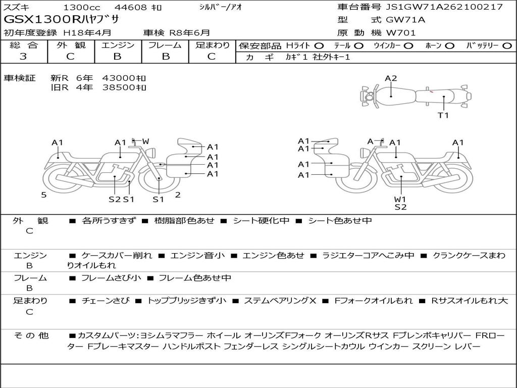 | Номер рамы / VIN | JS1GW71A262100217 |