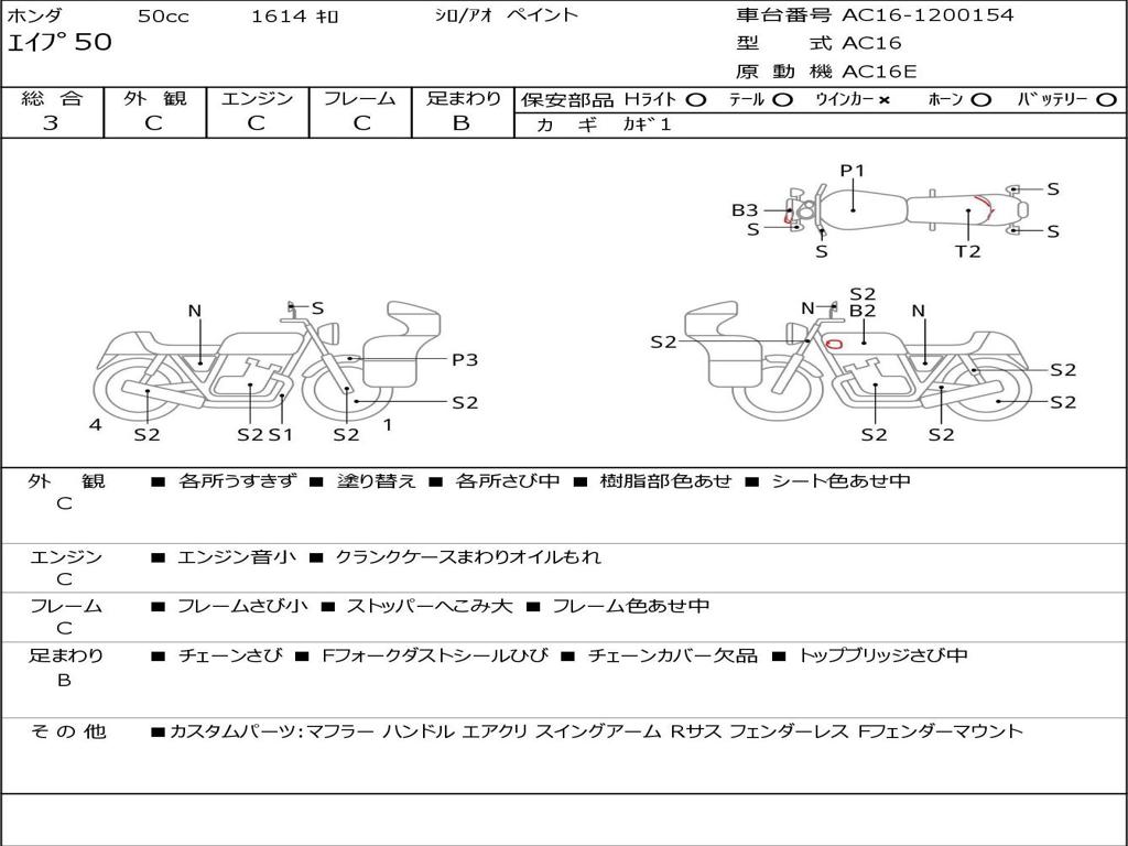 | Номер рамы / VIN | AC16-1200154 |