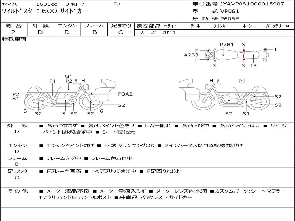 | Номер рамы / VIN | JYAVP081000015907 |