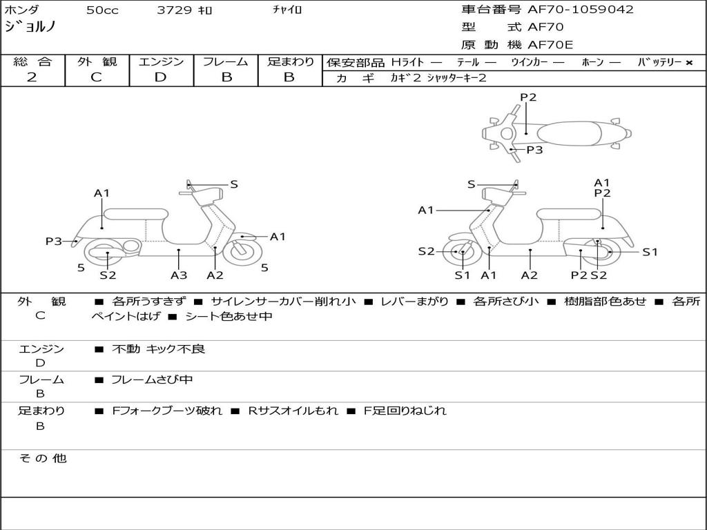 | Номер рамы / VIN | AF70-1059042 |