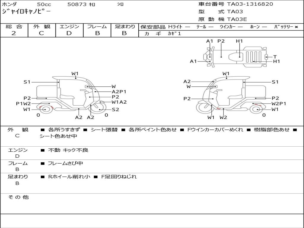 | Номер рамы / VIN | TA03-1316820 |