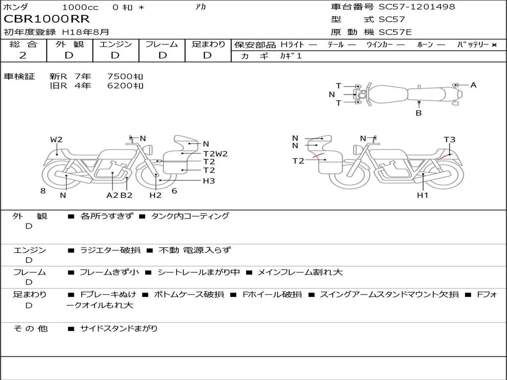| Номер рамы / VIN | SC57-1201498 |