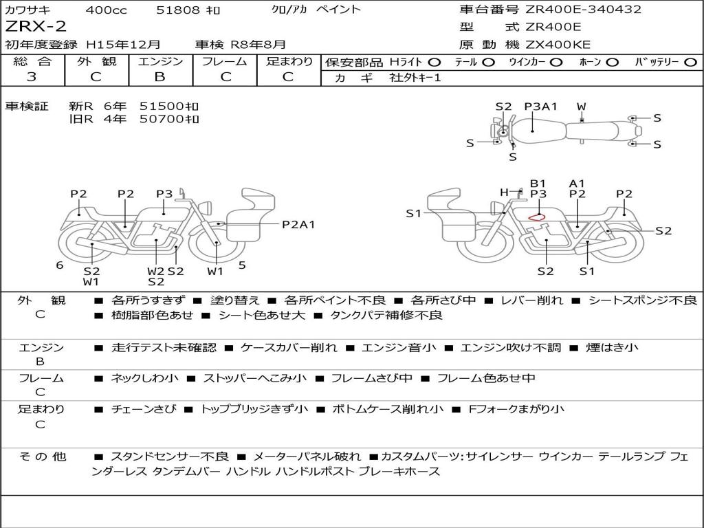 | Номер рамы / VIN | ZR400E-340432 |