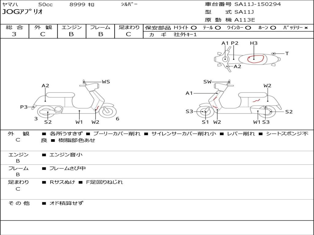 | Номер рамы / VIN | SA11J-150294 |