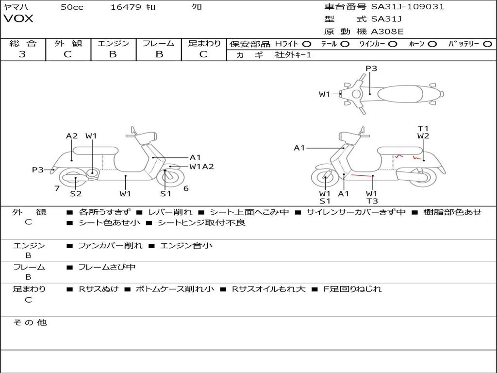 | Номер рамы / VIN | SA31J-109031 |
