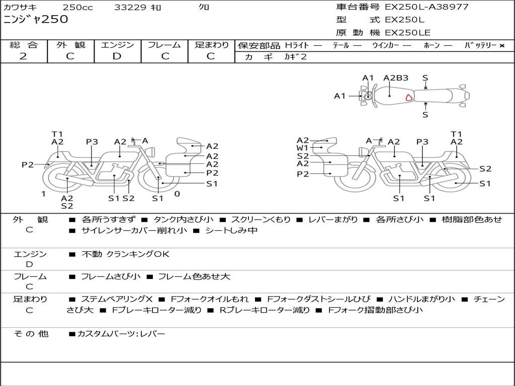 | Номер рамы / VIN | EX250L-A38977 |