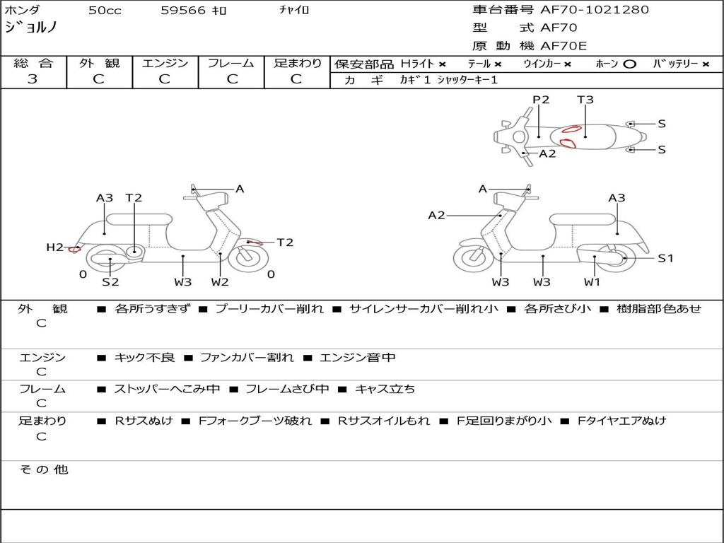 | Номер рамы / VIN | AF70-1021280 |