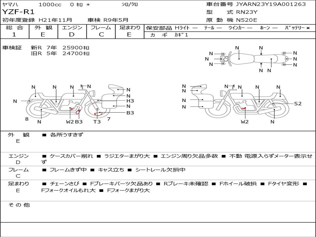 | Номер рамы / VIN | JYARN23Y19A001263 |