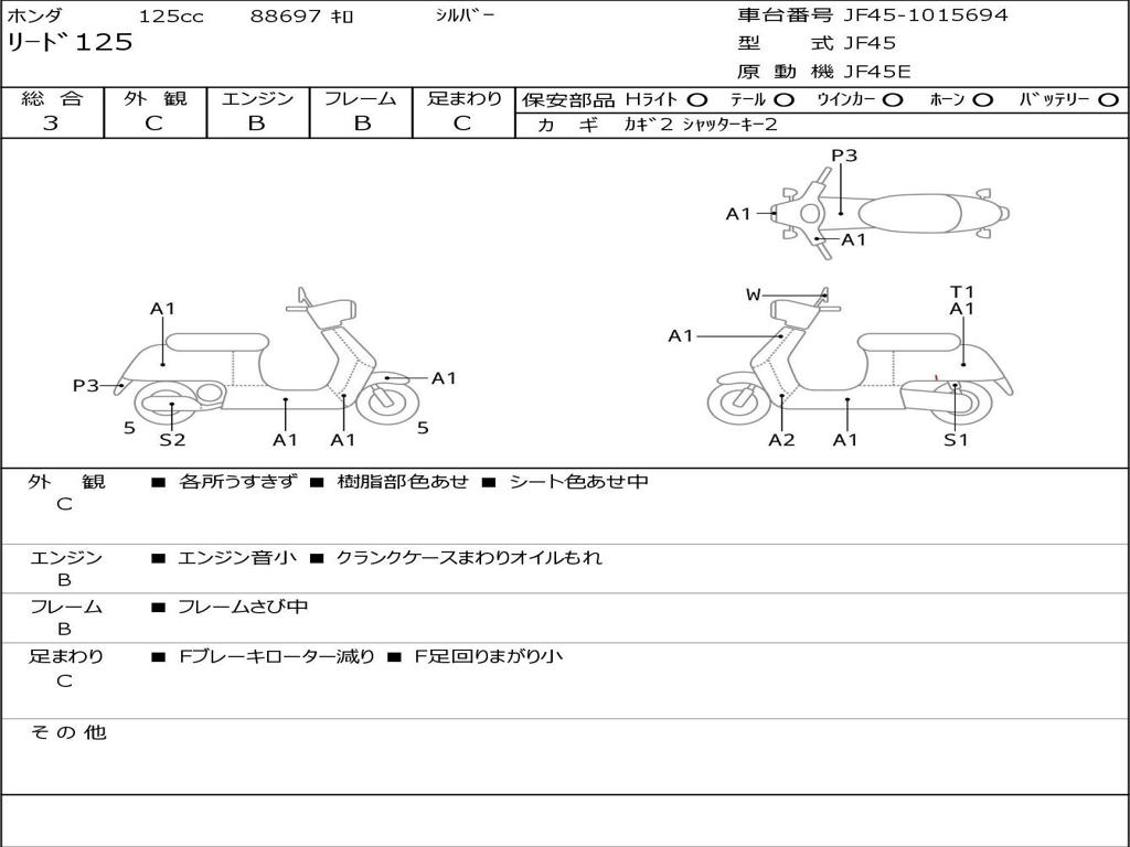 | Номер рамы / VIN | JF45-1015694 |