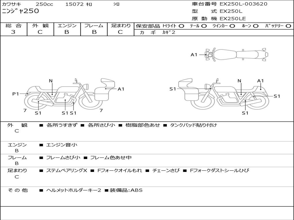 | Номер рамы / VIN | EX250L-003620 |