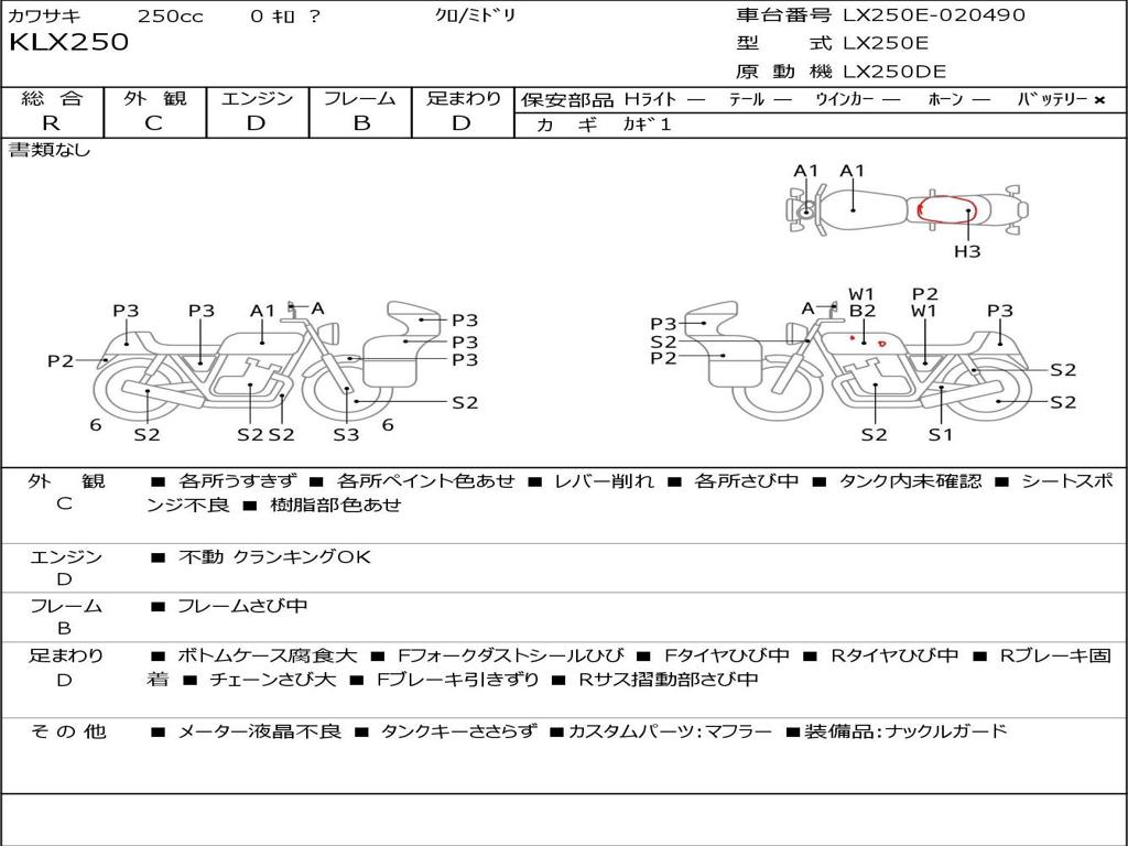 | Номер рамы / VIN | LX250E-020490 |