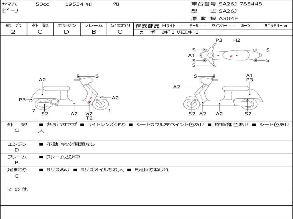 | Номер рамы / VIN | SA26J-785448 |