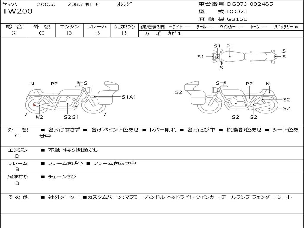 | Номер рамы / VIN | DG07J-002485 |