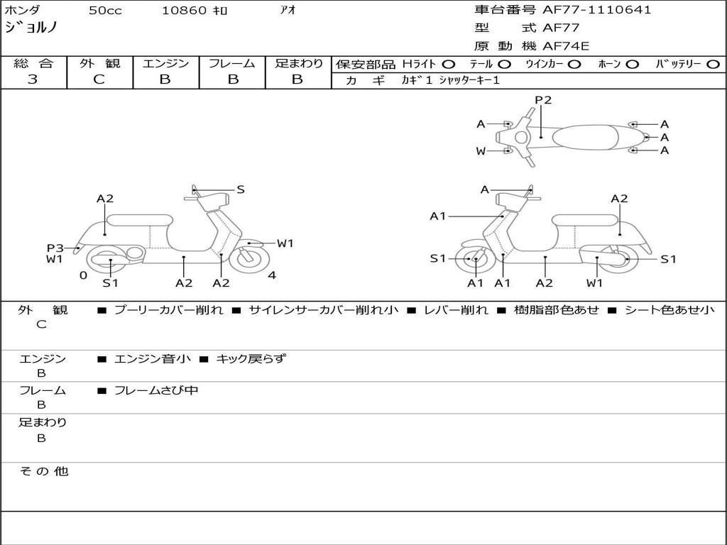 | Номер рамы / VIN | AF77-1110641 |