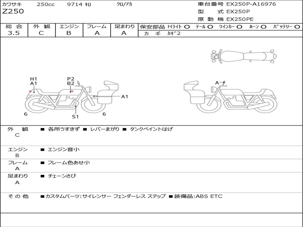 | Номер рамы / VIN | EX250P-A16976 |
