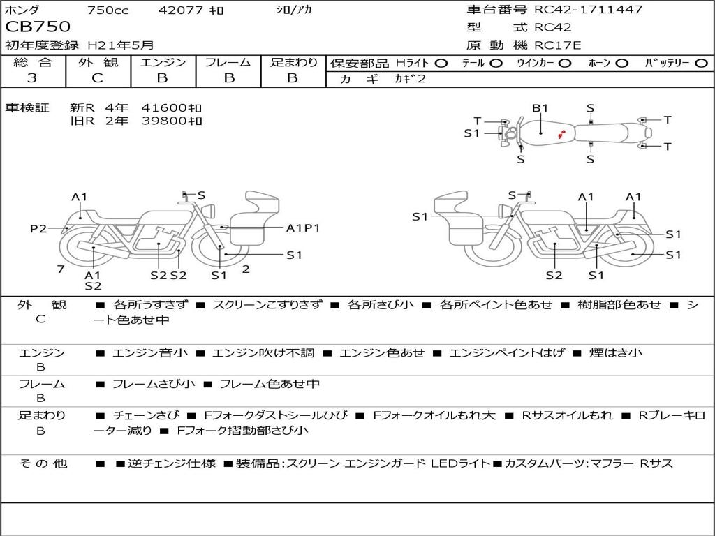| Номер рамы / VIN | RC42-1711447 |