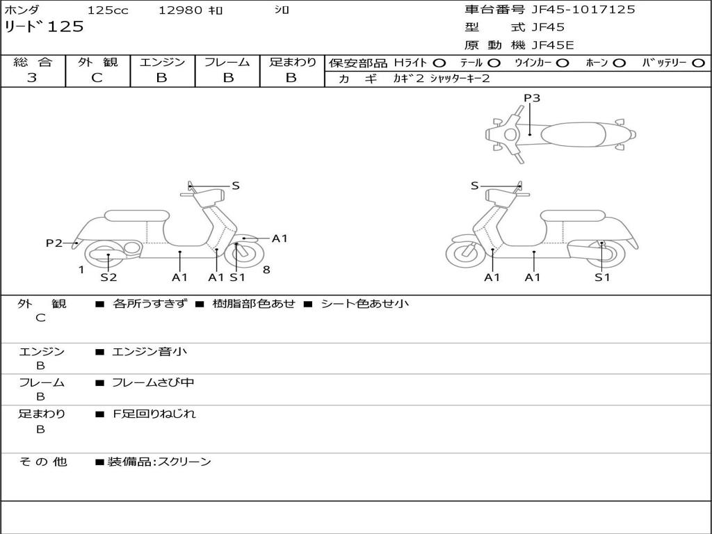 | Номер рамы / VIN | JF45-1017125 |