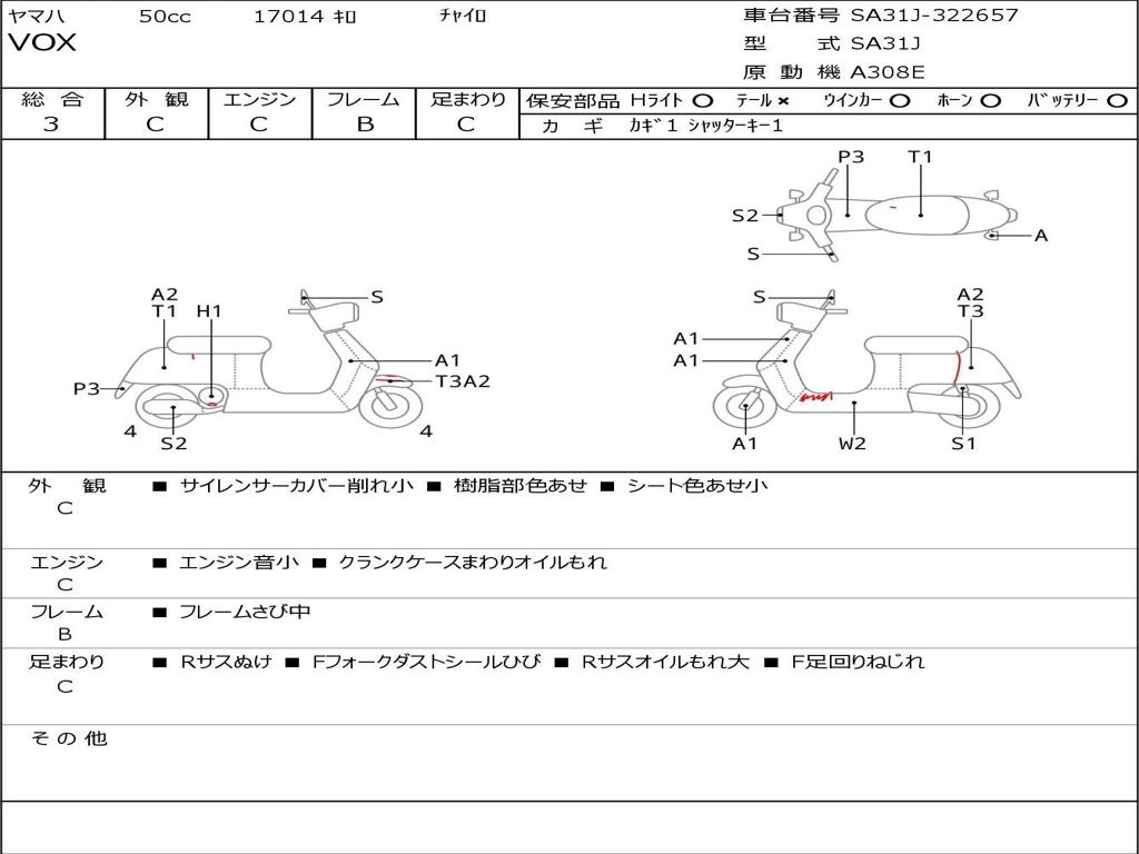 | Номер рамы / VIN | SA31J-322657 |