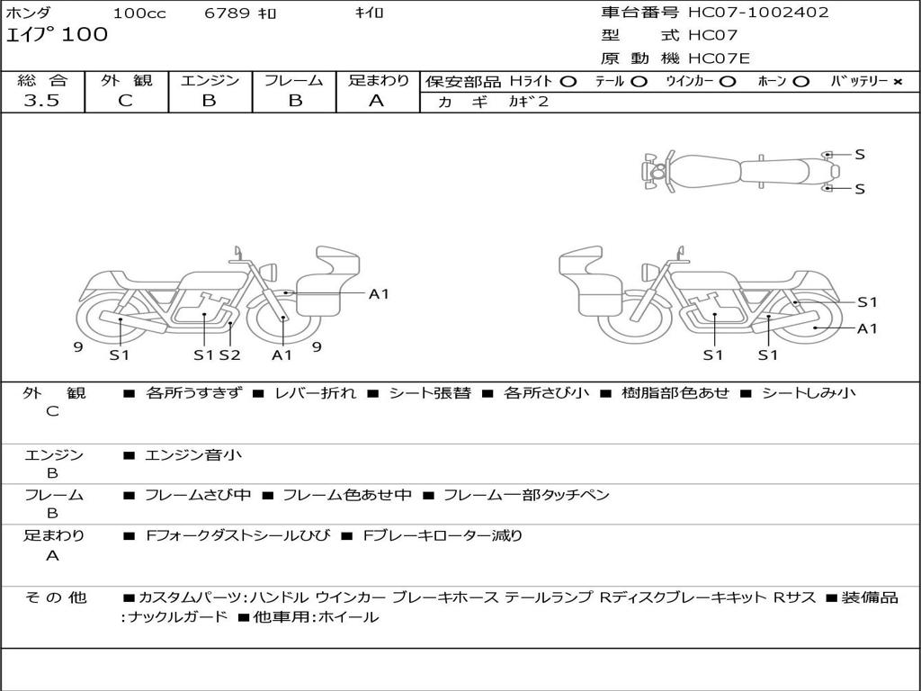 | Номер рамы / VIN | HC07-1002402 |