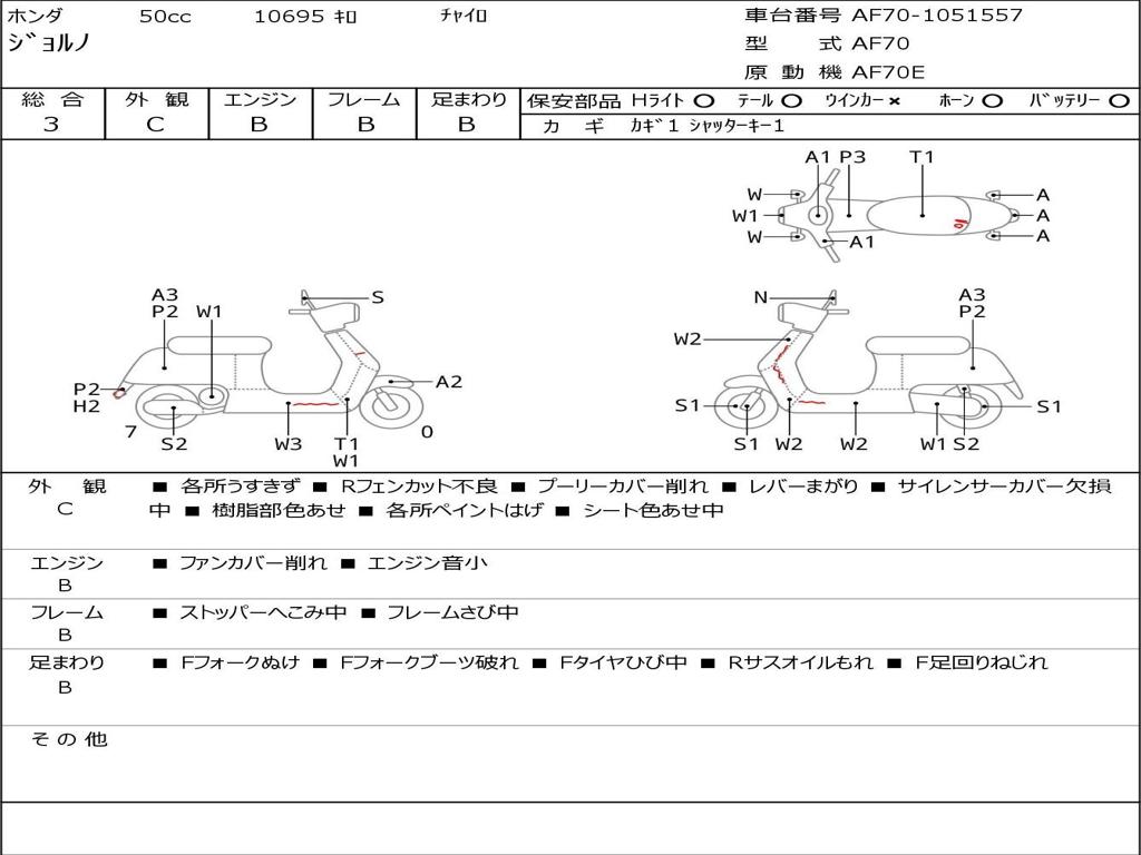 | Номер рамы / VIN | AF70-1051557 |