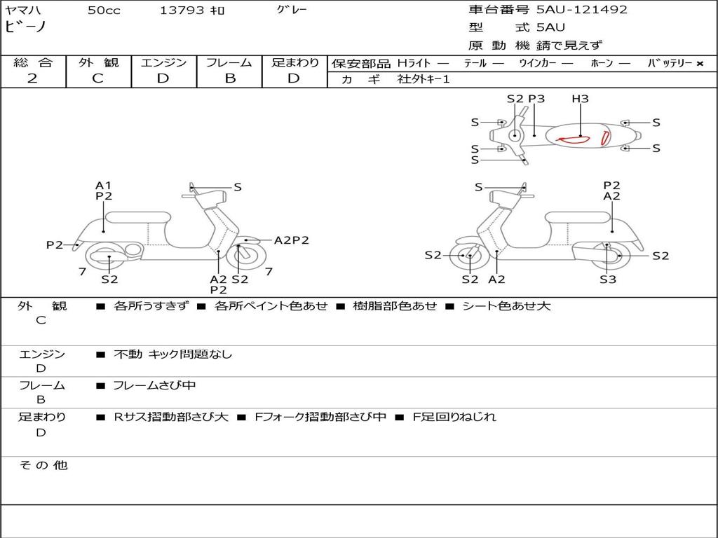 | Номер рамы / VIN | 5AU-121492 |