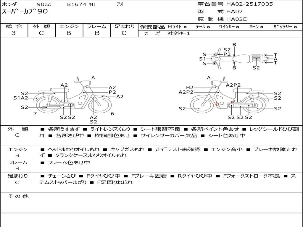 | Номер рамы / VIN | HA02-2517005 |