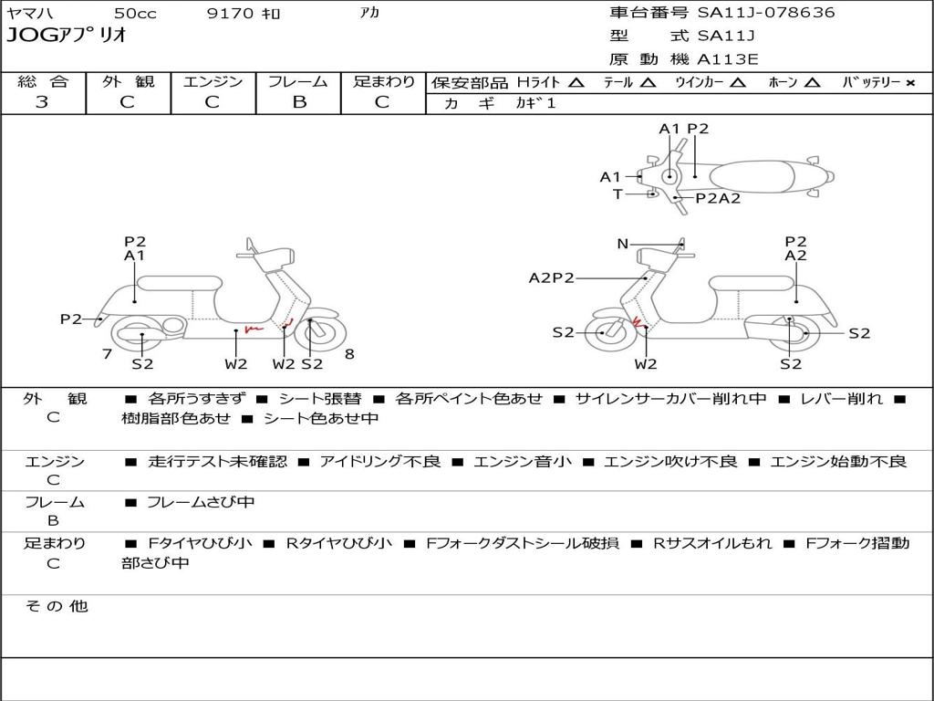 | Номер рамы / VIN | SA11J-078636 |